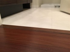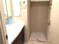 廊下進んで右手にあるのは、洗面室&バスルームです。段差も無くて移動もスムーズ。左手に洗面台、正面に洗濯機置場、右手にバスルームの並びになっています。
