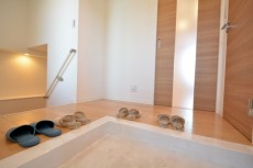 玄関扉を開けると、貼り換えたフローリングと白い石床がお出迎えしてくれます!