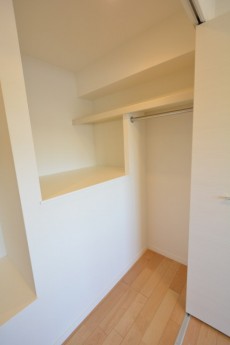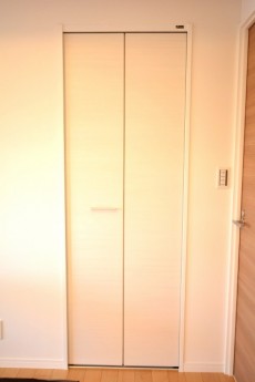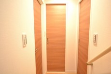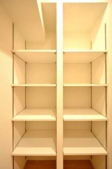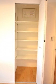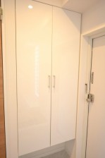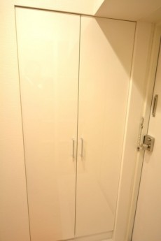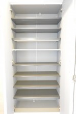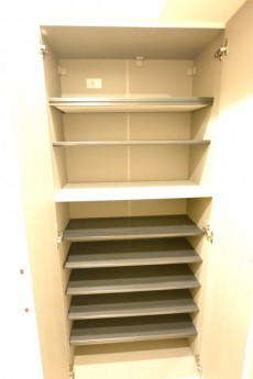 右の扉を開けると、9階から入れる扉があり、その扉に向かって右側に収納棚が準備されています。普段使わない履物関係やそれ以外の物も片づけておけます!