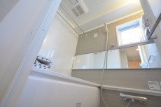 小窓に目が行くバスルームは、ワイドミラーが取り付けられています!広々ご利用いただけます!因みに浴室換気乾燥機付きなので、御洗濯もいつでも乾かせて、とても嬉しいアイテムの一つです!