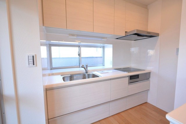 シンクと調理台の目の前には、サッシがありますので、煙の出る料理や、匂いの強い料理の際には、窓を開けて調理出来ます!
