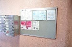 メールボックスは左側に設置されていて、その隣には掲示板が設置されています。お出掛けやお帰りの際にいつも通るので、その際にチェックできます!