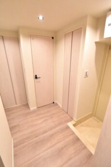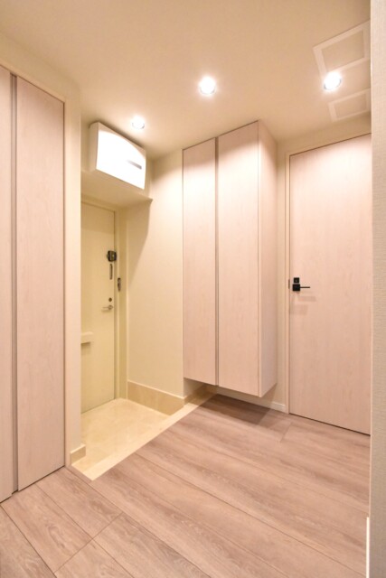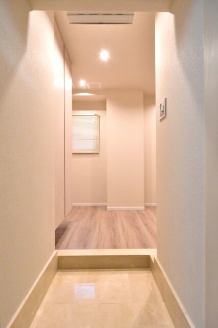 中は廊下というよりホールのような広めの空間になっています。入ってすぐが広々としてるのっていいですよね。白木調の建具で明るく上品な雰囲気です。