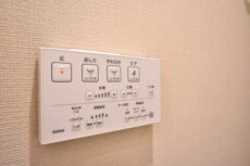 ノーリツ製追い焚き機能付きのユニットバス。「ふろ自動」ボタンひとつでお風呂を沸かすことが出来ます。保温もしてくれるので、いつでも温かいお風呂に入れますよ。