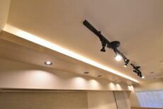 間接照明、ダウンライト、スポットライトと様々な照明が使われていて、照明へのこだわりが感じられます。シンプルな色使いのお部屋に光でアクセントを付けるなんて、なかなかの上級テク!