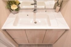 収納は洗面台下と三面鏡裏のキャビネット。様々なタイプの収納があり、細々した物が多くなりがちな洗面周りもスッキリ片付きそうですね。