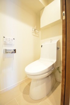 トイレの床も同じタイル。デザインに統一性がありますね。奥に収納が