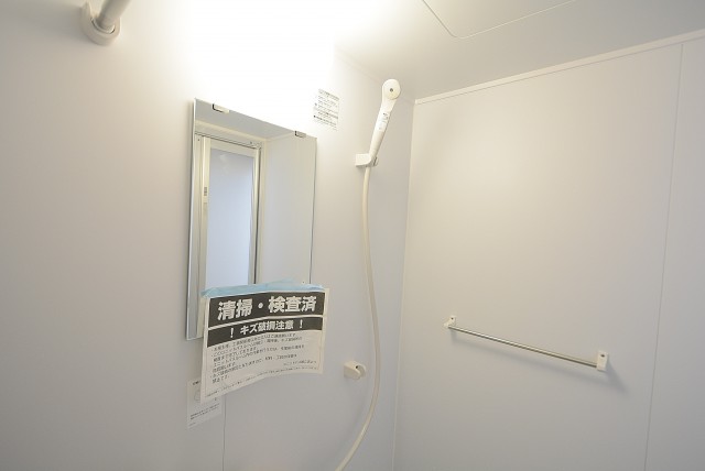 バスルームには浴室換気乾燥機が設置されています。ほかにも、ドアノブに