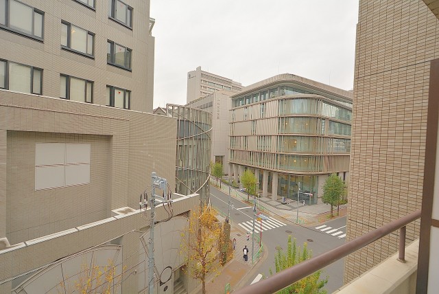 バルコニーからは千代田区の風景が広がっています。周辺には学校が多いです。