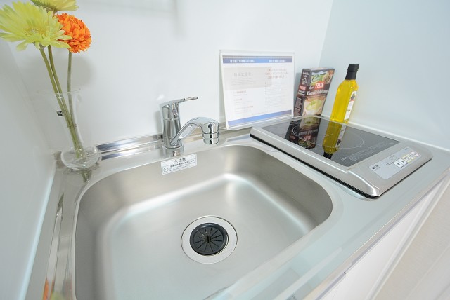 お料理に集中できそうです。シンクの水栓は浄水器内蔵型。