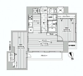 約11.0畳のリビングダイニング・キッチン。フローリングの遮音等級はLL45。