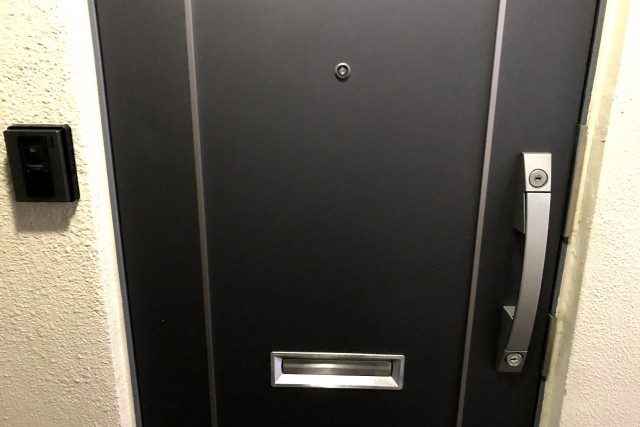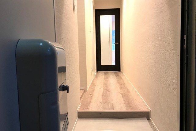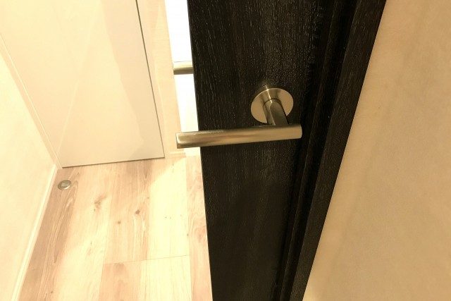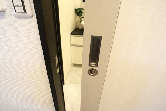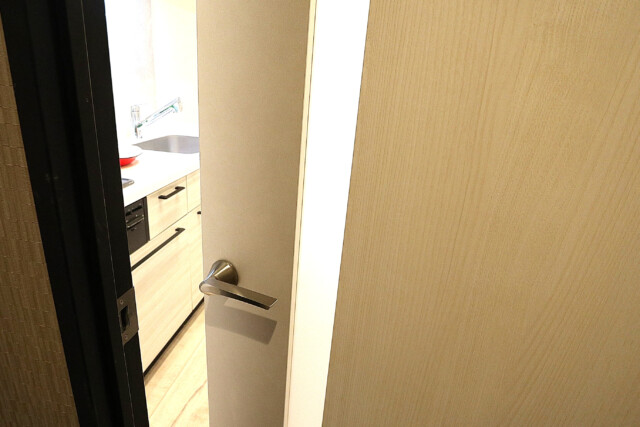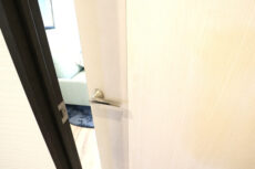 モニター付きインターフォンがありますね。ダブルロックの軽い力でも開けることのできるドアです。それではドアを開けて内見スタートしましょう。