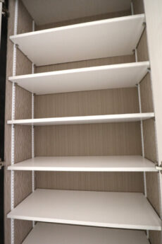 左側はトールシューズボックス。棚が可動しますので、こちらもいろいろと収納できそうです。