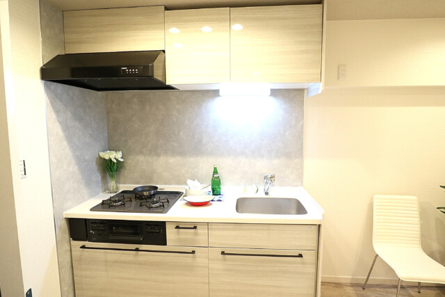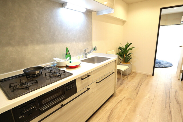 キッチンはシステムキッチンでコンパクトにまとまっています。