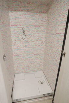 正面のダイニングキッチンに入る手前に左側に扉がありますね。こちらは、洗濯機置場です。