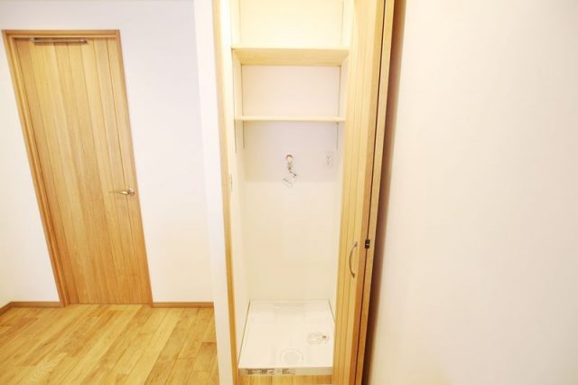 洗濯機置場の上にも物置棚が設置されています。