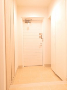 タイル貼りで高級感のある玄関ホール。インターホンは来訪者の顔が確認できるTVモニター付きです。