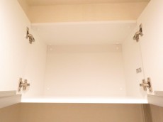 ペーパーのストックや掃除用具を上に仕舞えるので足元はスッキリ。
