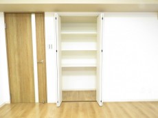 約5.7帖の洋室扉の外には可動棚付きのクローゼットが設置されています。