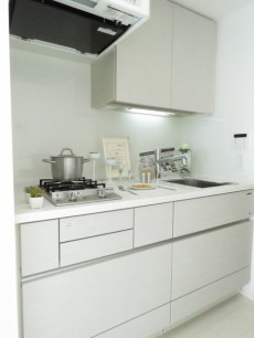 水栓は浄水機能付き、コンロは2口ガスコンロ。