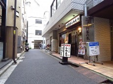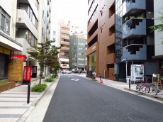 外はマンション前の通り。ビルやマンションが建ち並ぶ風景です。この日は時刻が夕方だったので通り沿いの居酒屋さんの明かりがチラチラ輝いているのが目立って見えました。