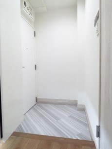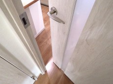 廊下右側の白い扉はシューズBOX。たっぷり収納できるトールサイズの物が2つついています。片方は自分用、片方は来客用と分けて使ってもよさそうです。