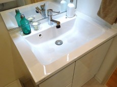洗面化粧台は鏡の裏、引き出しと収納場所が豊富。ゴチャゴチャ散らかりがちな水廻りもスッキリ片付いた状態をキープできそうです。