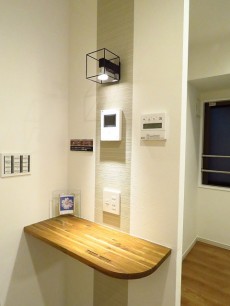 LDK入口横にはおしゃれなTEL台も設置されています。
