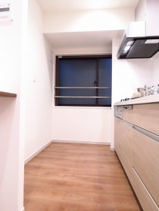 キッチンスペース。横に窓があるのでお料理中の熱や匂いもサッと解消できます。窓際にはちょとしたカウンターも。調味料やキッチングッズなど使用頻度の高い物を置くとお料理がはかどりそうですね♪