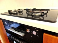 ディスポーザーに大型の食洗機、電子レンジに3口コンロ。奥様の「あったらイイナ」が全部そろった感じのシステムキッチンです(*^。^*)