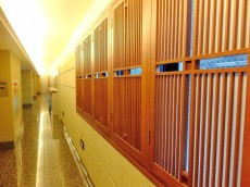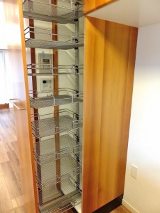 さらに、背中側のスペースも機能的。一番手前の棚は、開けてビックリ☆こんな大きなラックが出てきました。発想が庶民で申し訳ないんですが、学食や病院かと思いました^_^;