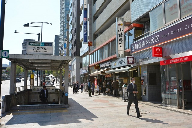 さすが都心。8路線も利用できます。この日は一番近い九段下駅からマンションまで向かってみました。この辺り、バシッとスーツを着たお勤めの方の姿が目立ちます。