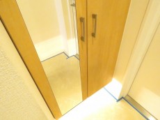 表扉の一部には縦長の鏡がついているのでお出かけ前の身だしなみチェックもサッと済ませられますよ。