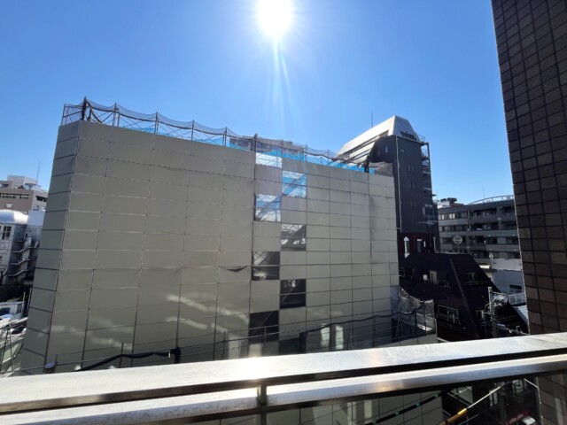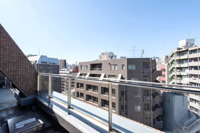 透明な手すり壁がとても開放的ですね。場所柄高い建物が多いですがこちらも10階ということで負けていません。外には広い空が広がっています♬