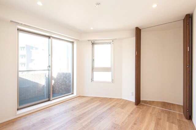 二面採光で明るさ、風通し共に良好なお部屋です。広さも十分でメインのベッドルームにピッタリですね。収納は間口が広いタイプのクローゼットと…