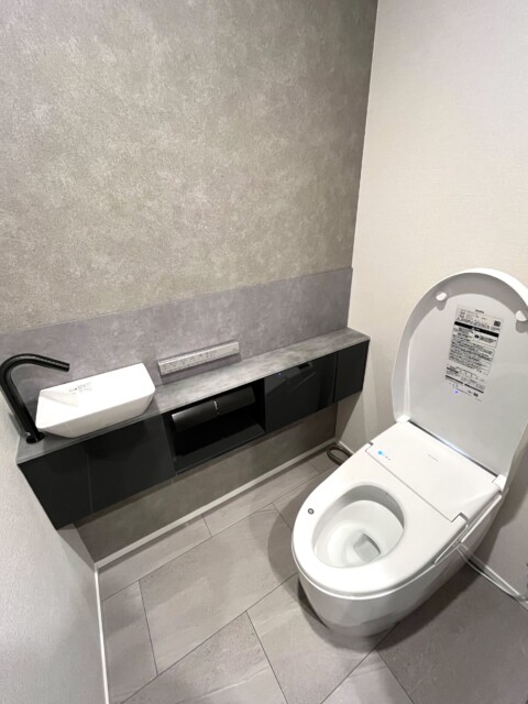 モノトーンでまとめられていてカッコイイ感じのトイレになっていますね。