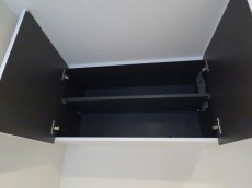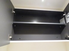 洗濯機置場の上には収納棚が設置されています。