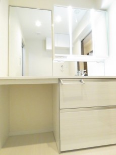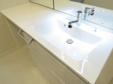 洗面化粧台はカウンターが広々!2人並んで使えるので朝の洗面所の渋滞も解消されそうです。