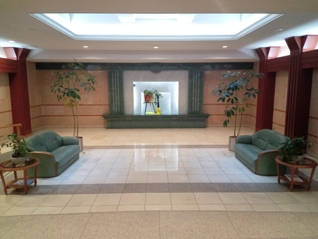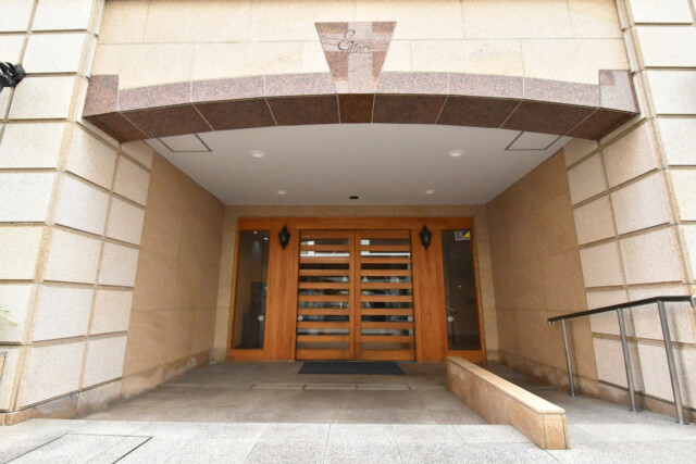 エントランスは御影石と木材を使用した重厚感のある雰囲気です。段差が少しありますがサイドに設けられた斜路でバリアフリーにも対応。オートロック完備で防犯面もバッチリです♪