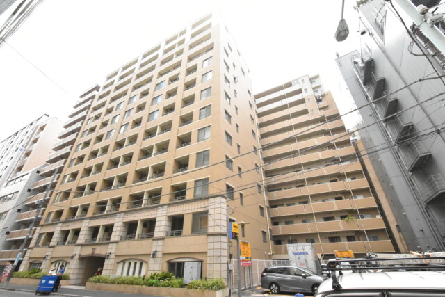 江戸通りから一本中に入ったところに建つ、江戸最古の街といわれる「大伝馬町」をアドレスに持つマンションです。比較的新しくまだまだ外観は綺麗です。