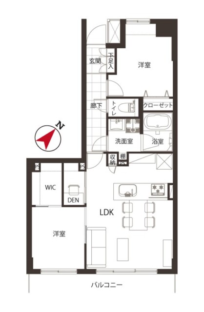 お部屋は2階、専有面積55.76㎡、間取りは2LDK。DENとウォークインクローゼットの付いた、シングルまたはDINKSの方にお勧めのお部屋です。早速行ってみましょう!