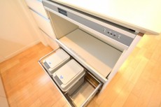 さらにその下はゴミ箱置場になっていました。どうやらゴミ箱は3つまで置いておけそう。分別も楽々ですね☆