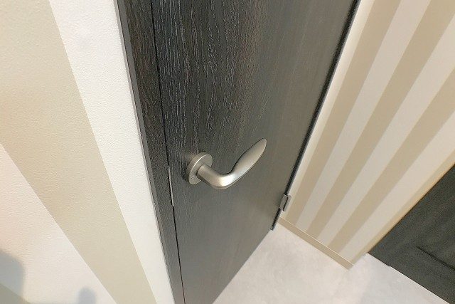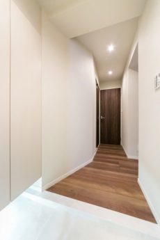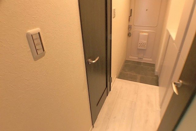 玄関を開けると、白いクロスと優しい木目調のドアがありました。