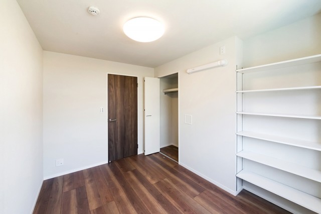 こちらの約5.5帖の洋室は棚とクローゼットが用意されているのでたくさん収納することが可能です!