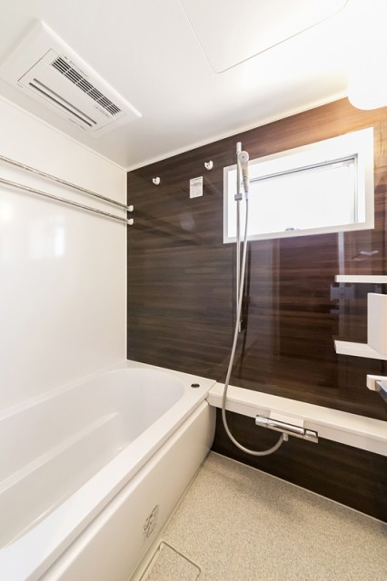 バスルームもやさしいベージュのパネルを使っているので、一日の疲れをしっかり癒してくれそうですよ(^v^)浴室乾燥機付なので、雨の日の洗濯もバッチリ(^^)/