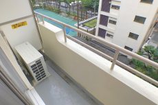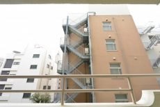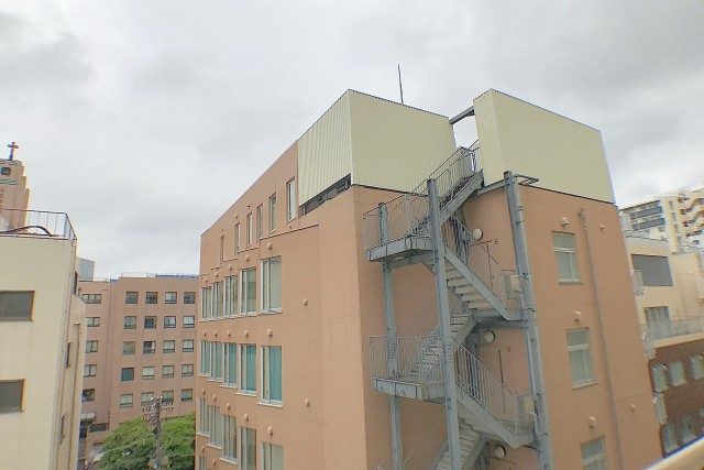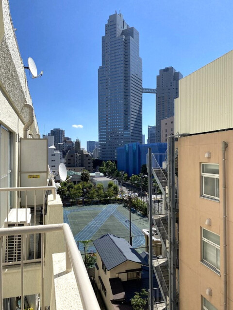南の方角には「中央区立明石小学校」の校庭。その向こうには特徴的なフォルムの「聖路加ガーデン」もきれいに見えます。最近知ったのですが聖路加って「せいるか」と読むんですね、ビックリです!