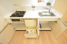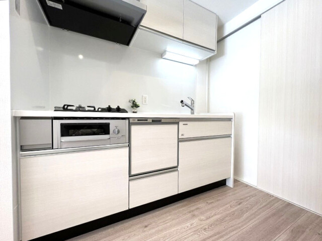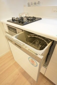場所をとらずに残りのお部屋を広く使えるというメリットがある一方で、キッチン内が丸見えになってしまうというデメリットもあり、常日頃から綺麗にするよう心掛けることが必要です。システムキッチンには、食器洗浄乾燥機や浄水機能一体型水栓など家事をサポートしてくれる機能もバッチリ装備!