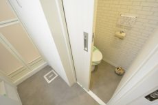 入って右側に洗濯機置場、左にトイレです。全て一部屋にまとまっているのでとても便利ですね♪