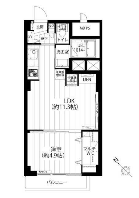 今回ご紹介するお部屋は4階、間取りは1LDK、専有面積は38.99㎡。