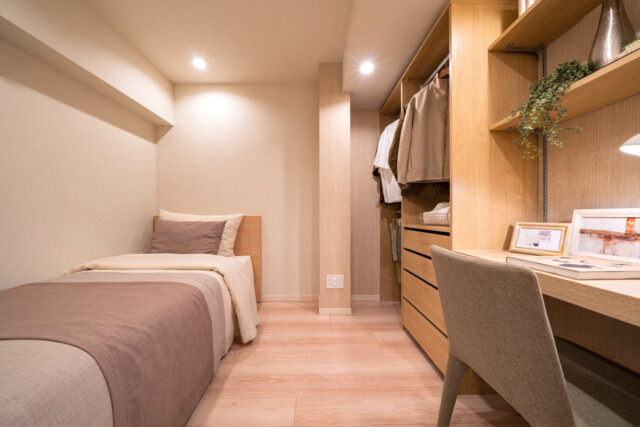 サービスルームとは、採光などの関係で法律上「洋室」と呼べないお部屋のこと。あくまでも法律上なので普通に居室として使えることがほとんどです。こちらもカウンターデスクやオープンクローゼットが造り付けになった立派な洋室ですよ。